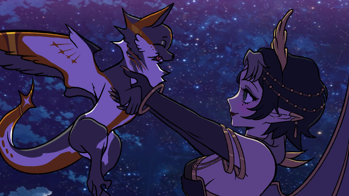 ─────────── .✦. ───────────Vesper Nestia, a Celestial Dragon Elf who lives in the realm of Nyxia with her dragon companion, Lumi. Nyxia is a realm of eternal twilight and star-dusted mountain tops.Vesper is a magic-wielding trader who takes dangerous contracts to find highly sought-after objects for people willing to pay a high price. Typically, this gets her into the wrong sort of company.She comes from a noble elven family of dragon riders from a different realm, Moonspire, which rises above the clouds. This kingdom is home to dragons who soar the sky and live in harmony with the elves as their mighty companions.Wanting nothing more than to live a life of adventure and freedom, she left Moonspire to make a name of her own with a promise to one day return.─────────── .✦. ───────────
